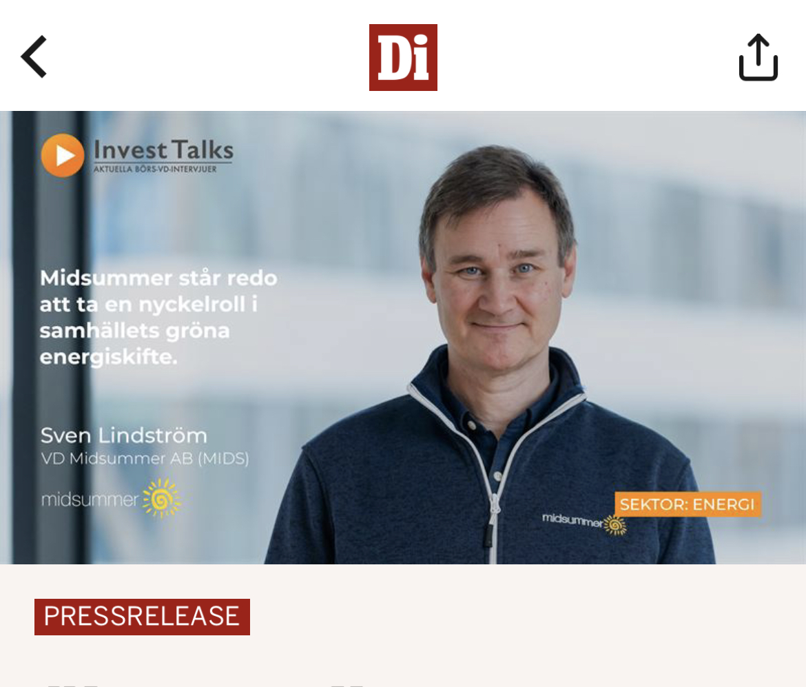 Case: Sven Lindström, Vd Midsummer AB (MIDS). Se intervjun här.