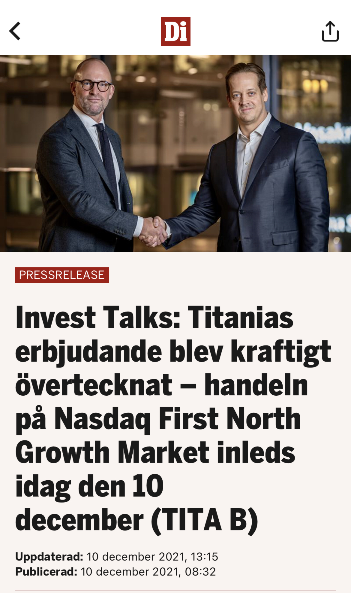 Case: Einar Janson, Vd Titania (TITA B). Intervjun läser ni här.