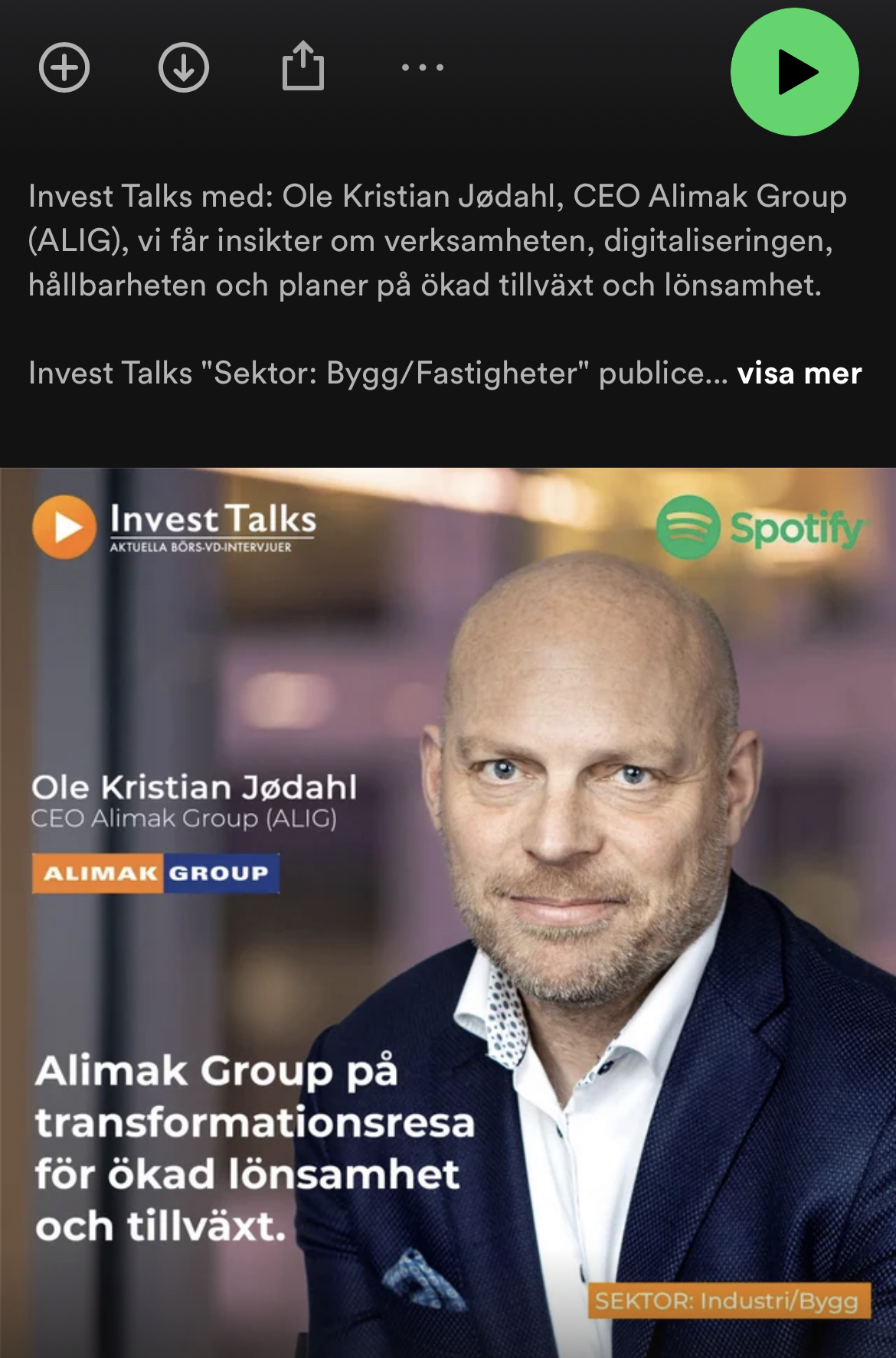 Case: Ole Kristian Jødahl, Vd och koncernchef Alimak Group (ALIG). Hör podd episoden finner ni här.